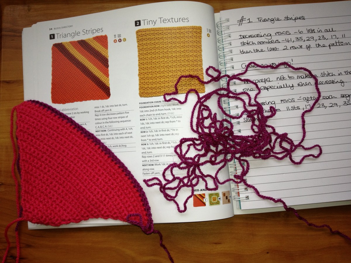 Back to the book and relentless counting (I esxaggerate slightly, but counting is not my favourite activity, I just want to crochet and be finished with a flourish!) on the decreasing row. This didn’t feel like a promising start to the crochet along, it’s only block #1!