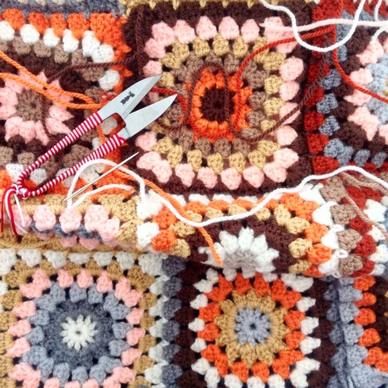 In a way I’m quite pleased the temperatures have dropped to a more typical Springtime coolness. I’ve been quite content to snuggle in my poncho and listen to my current audio book; the very enjoyable ‘Various Pets Alive and Dead’ by Marina Lewycka (stories about a commune called Solidarity Hall up in the North in the late 1960s, read by the excellent Sian Thomas? Oh yes please!) and darn more of my JAYGO ends.