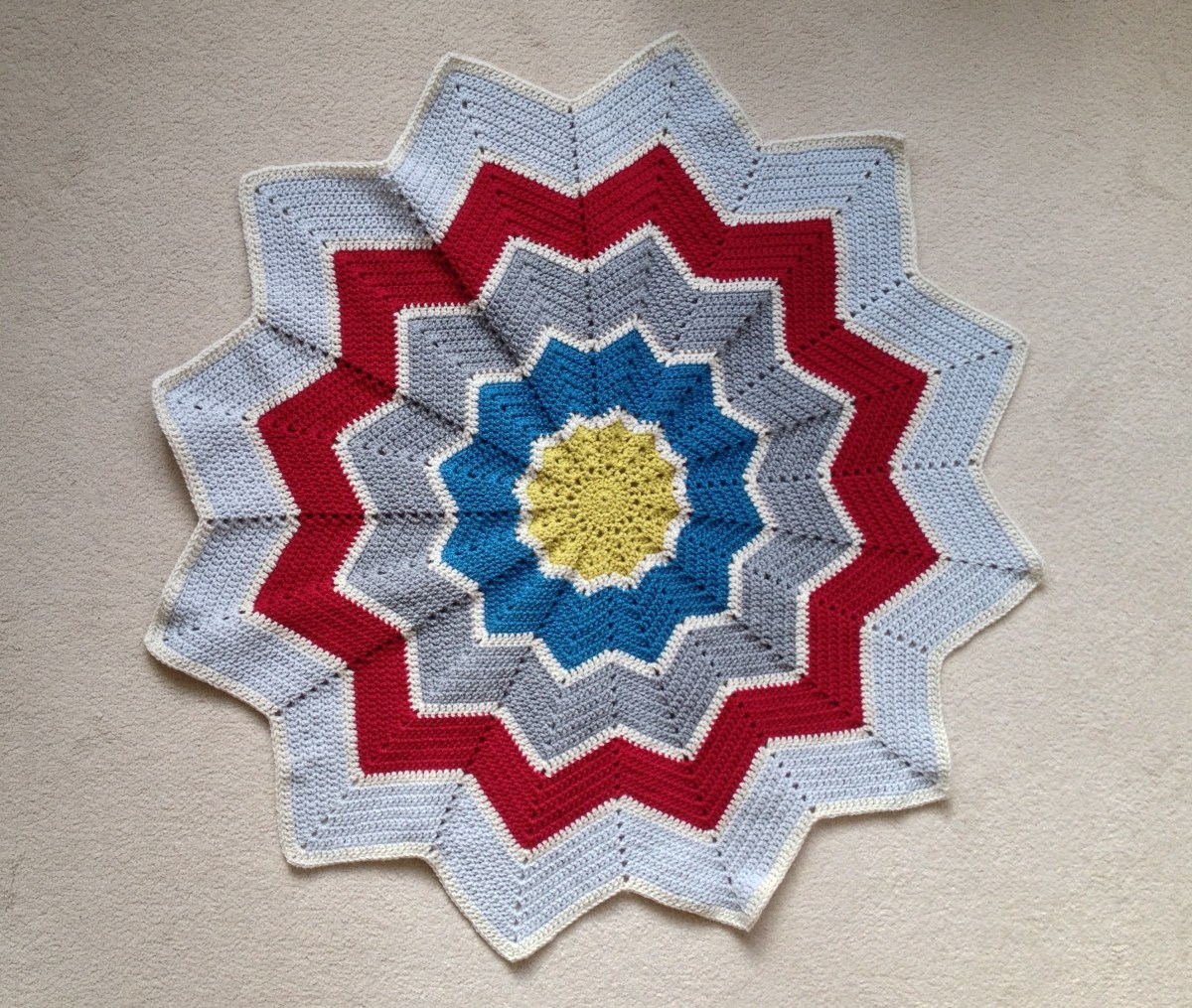 Published September 10, 2015 at 2653 × 2244 in 12 Pointed Star Ripple Blanket…finished!