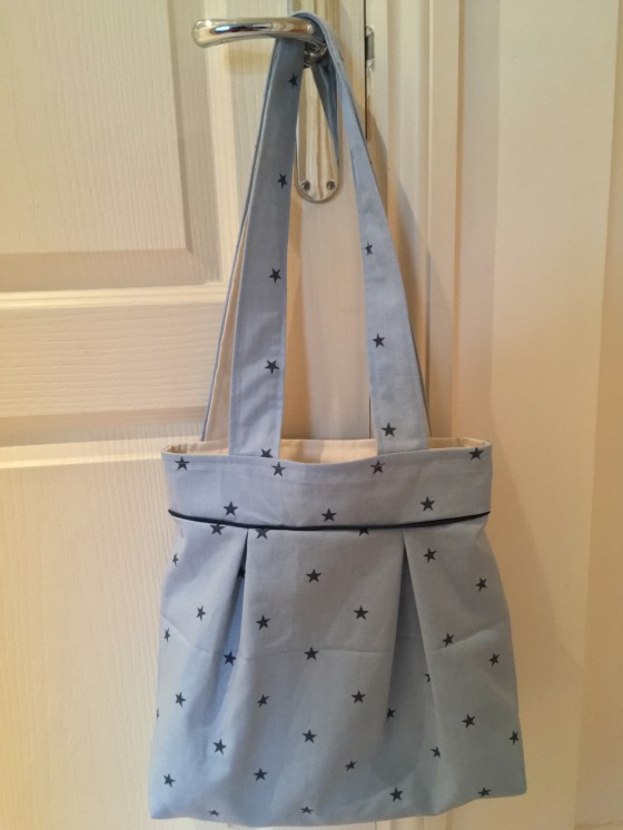 I finished my bag at Sewing Club on Monday. I guess I don’t need to spell out that I’m not a fan of all the pressing when sewing, especially as the tutor doesn’t use water in her irons. I imagine it’s because she doesn’t want leaky irons in her car but it makes pressing tricky. Sometimes I have sprinkled water from my drinking bottle to steam out particularly irksome creases but this week I lost the will to live iron again, by the bag’s end! That crease line will drop out with use, won’t it? Perhaps if I go out in the rain it will definitely go. That’s maybe an extreme anti-iron solution.