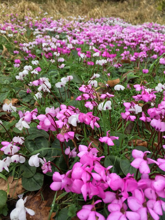 4. I’ve never seen cyclamen growing like that before, I thought they only came in pots and needed regular care. Sorry you slipped in the mud – your friend didn’t happen to get it on video, did she?…. ;)
