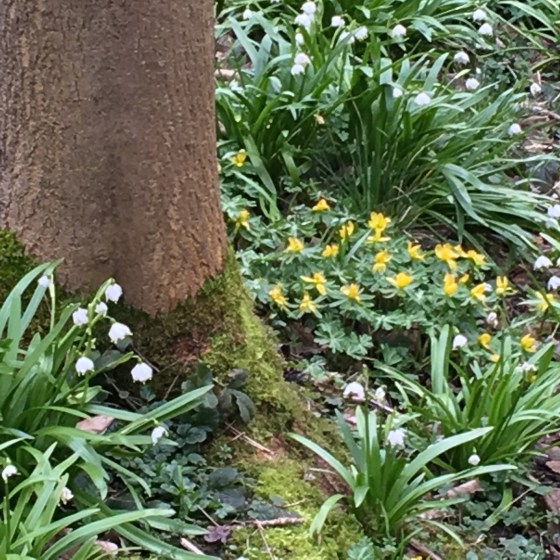 I was wondering whether the yellow flowers could be a yellow variant of forest anemones but they can be aconites just as well.