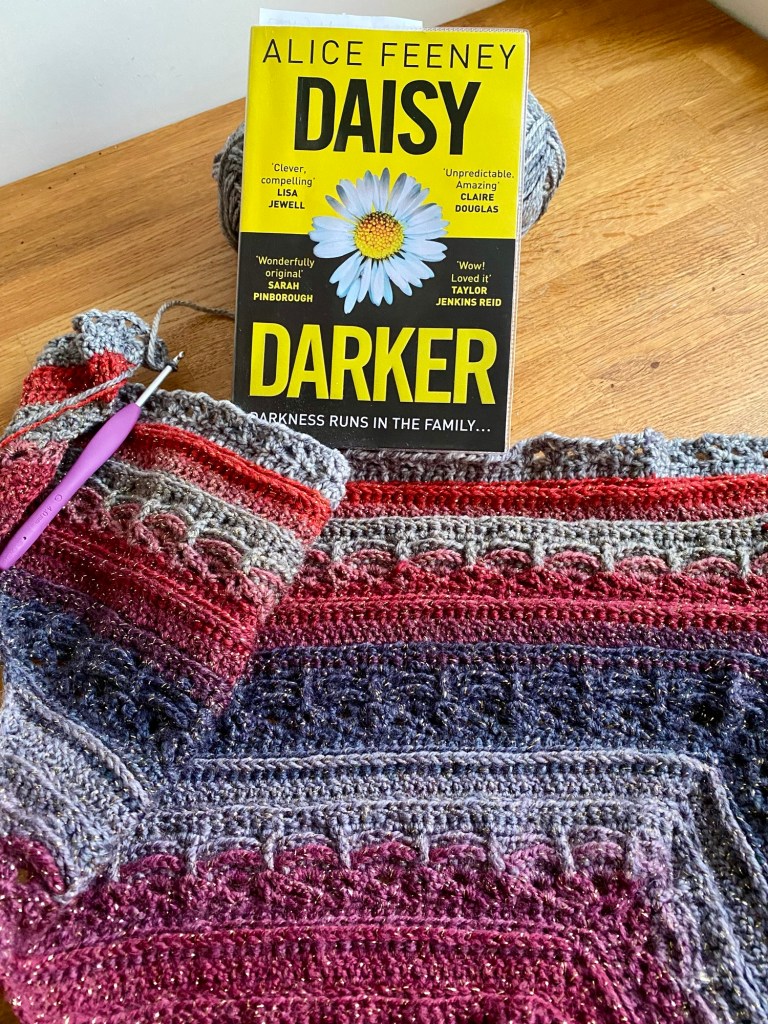 I just requested Daisy Darker from the library based on your review. Mystery/thriller lover here! A good crafting group is a blessing! My knitting group has grown from three to as many as eight, the latter of which is too big — too many separate conversations going on. But usually there are five or six in attendance, which is perfect.