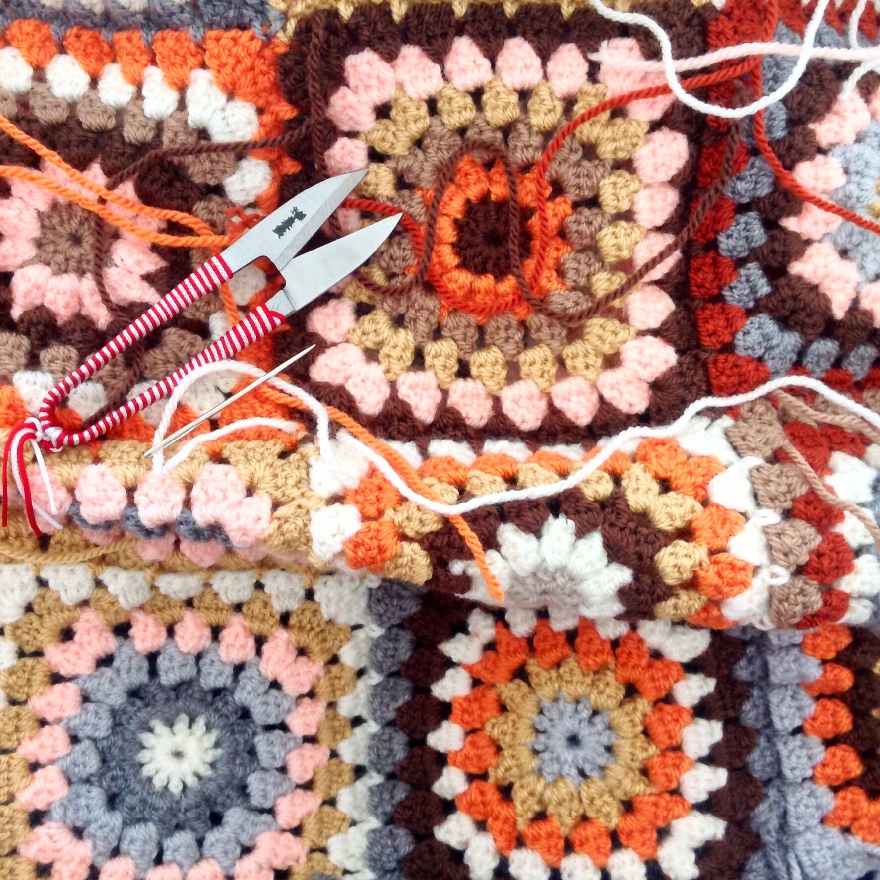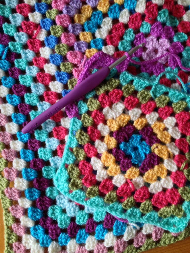 So, I’ve begun to join my squares to make up my coast blanket. Started in 2020 when we went away on holiday, finally, after months of Lockdown, it really began life as an unplanned project. “Argh! I’ve forgotten to bring anything to do on holiday!” I had to buy a hook and whatever yarn the small local yarn shop had in stock in a town in West Cornwall. I wasn’t sure if it was to be a cowl, scarf or what. I ended up crocheting a basic granny square and was so taken by the look of the colour changes that I made another and another and ….