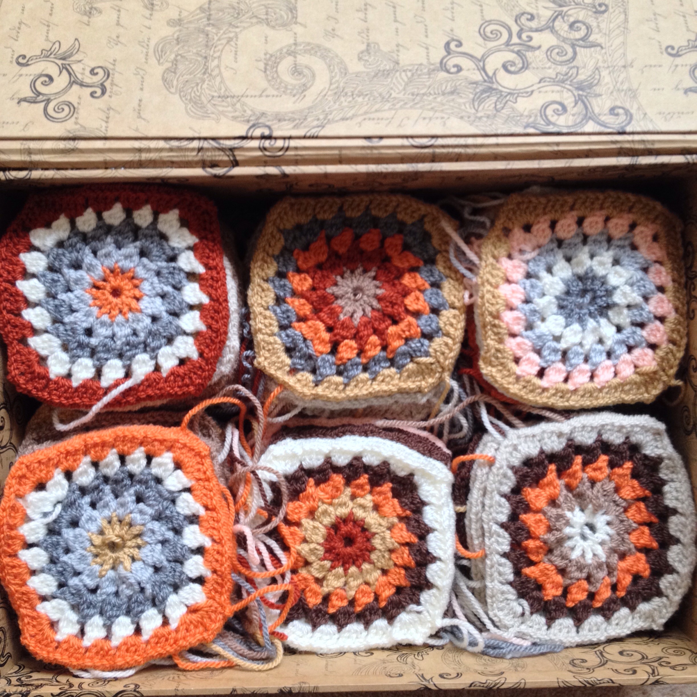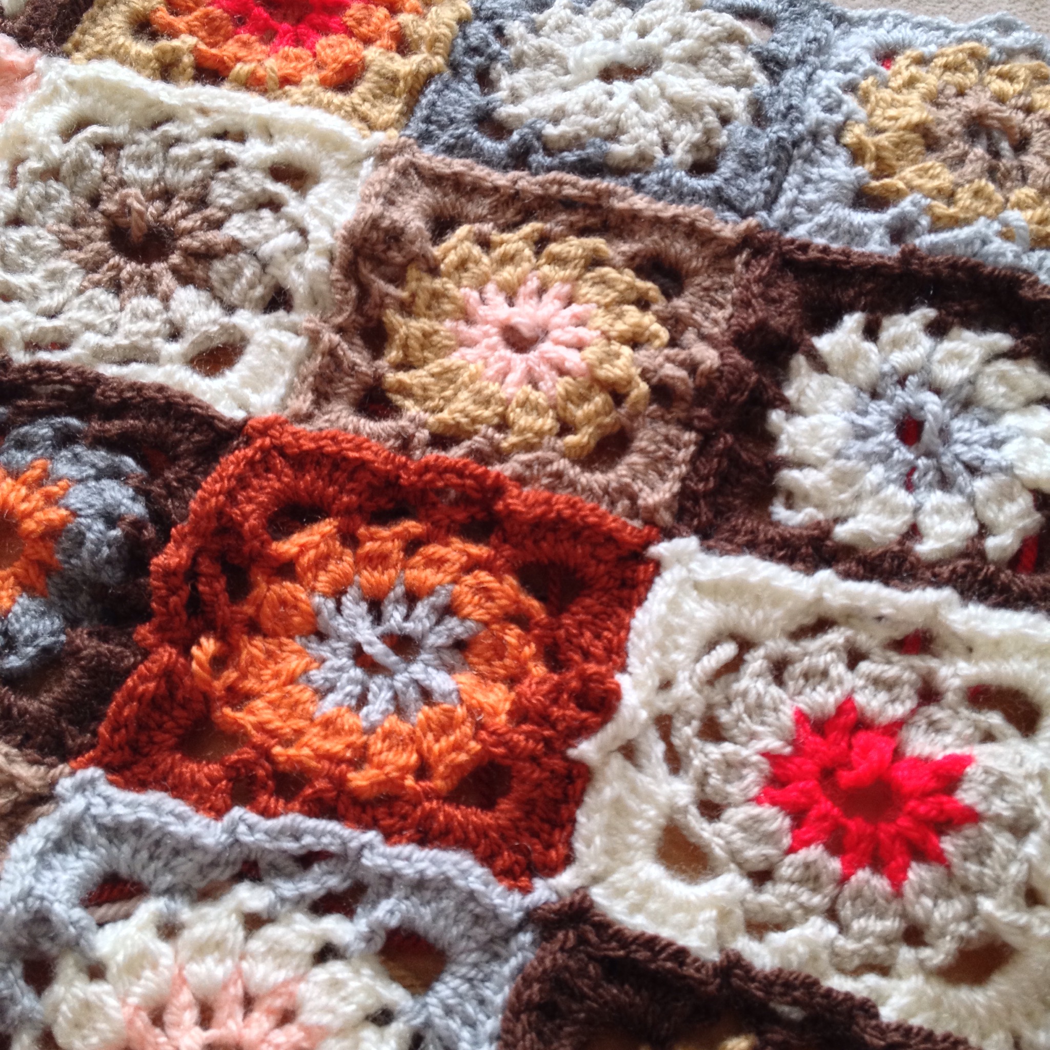 Do you remember how during Lockdown the urge to be creative and keep busy with crafting took hold of a great many people? I suspect crochet and knitting alleviated anxiety for many as well. I know I found it soothing when I felt caged and lonely at home. Because of the huge demand it became really difficult to get hold of specific yarn. Also when you’re living on an island during a pandemic and post-Brexit, shipments were (are still) often stuck in Europe. I ended up having to chop and change Hayfield Spirit DK colour variations. I just had to hope they would all blend in the end. I do think they work together. Also, the joining colours of the greys and cream should bring together all the others. My original intention was to have a blues and greys colour theme, so that they would match a Dorma grey flower king-size duvet, it’s rather more mixed than that, but this reflects the fact that it came to be during a very topsy turvy time. (I’ve paused to lay and light the log burner. It’s really getting chilly now. Chicken & lentil soup for dinner should help too.)