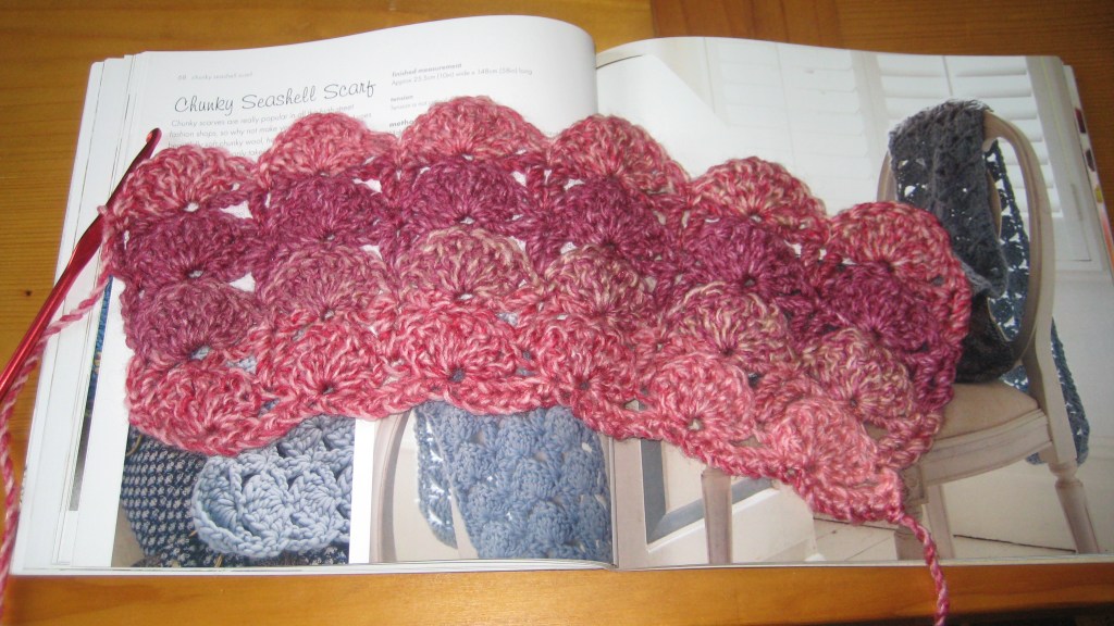 I was right about the yarn being squishy and incredibly soft. I’m loving it. Chunky yarn and a 6 mm hook means the pattern works up really quickly which is good as I’m limiting how much I do. I definitely made the right final pattern choice and I’m really happy!