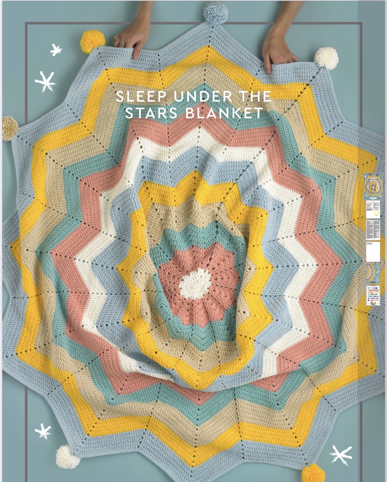 Plan B has worked out REALLY well because the Sleep Under the Stars blanket has got a similar overall quantity of yarn and it’s a really fun pattern. I’ve made three similar Star Ripple baby blankets before and I kept thinking how good it would be to have an adult sized star blanket to snuggle under… Wish now granted!