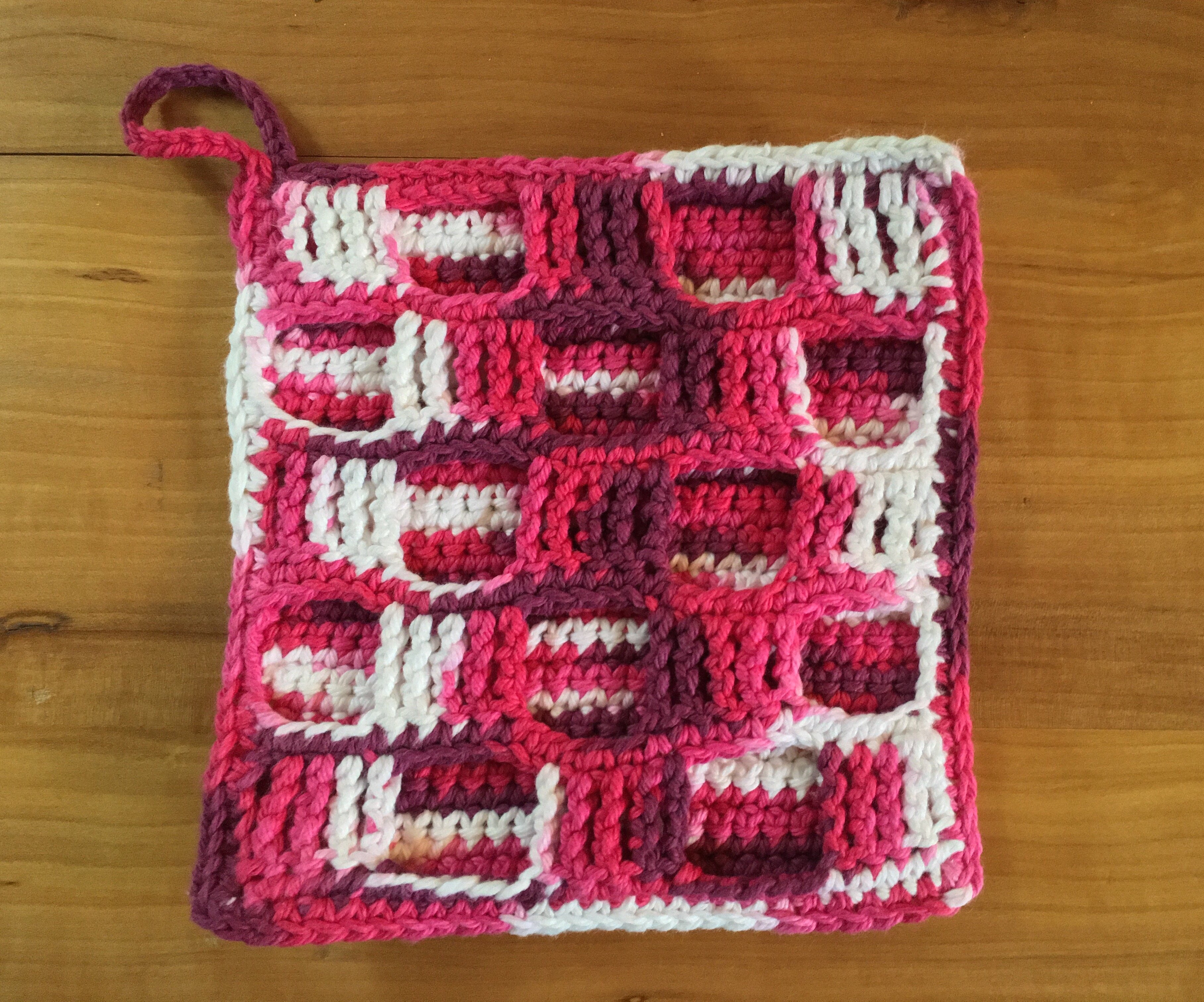 I used much smaller needles than the recommended 5mm, but the resulting fabric is thick and makes warm mitts.