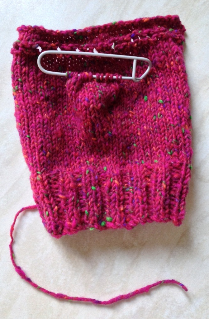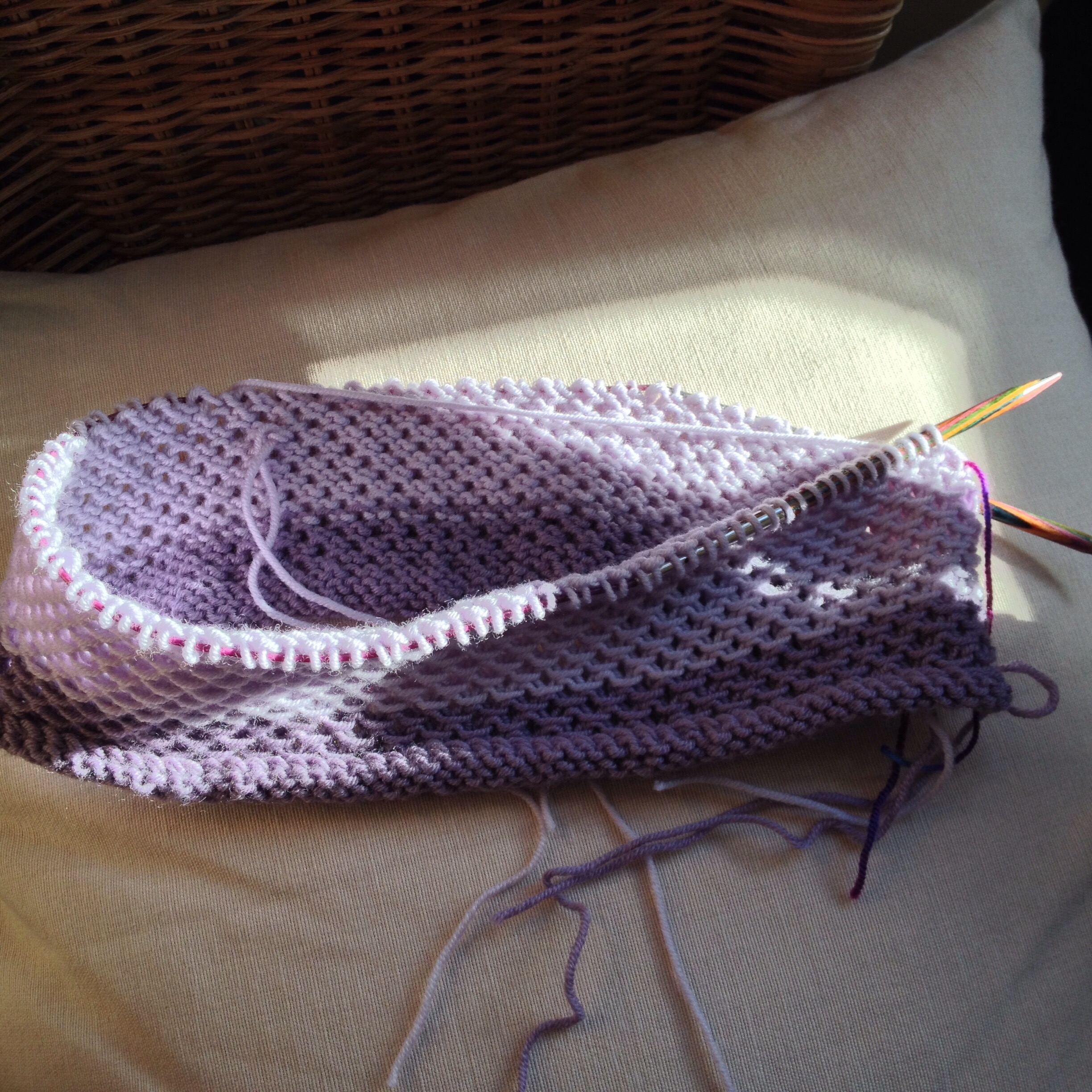 We all know swatching is important, even vital, but it seems a drag – not that I’ve ever actually done it before. The honey cowl is meant to be 12″ in width, but mine was actually looking like 10″ which meant I was knitting a neck brace! I didn’t think blocking would make 2″ difference so after pondering the inevitable I undid it all. It is best to do this quickly, rewind the yarn into balls and stuff it into a bag out of sight, out of mind!