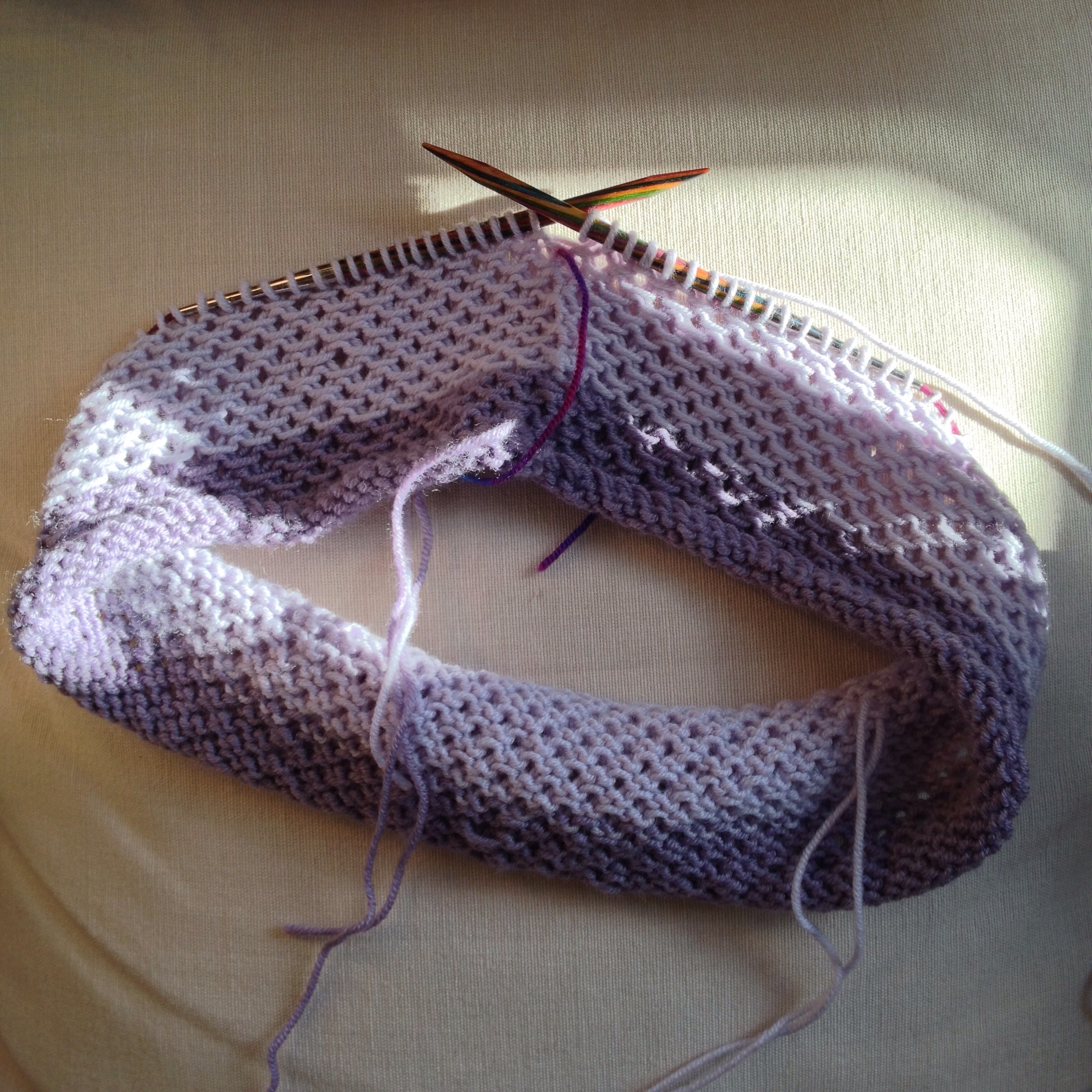 This week I added to my garter stitch blanket. I like the look of the navy with the lavender a lot. As I did another 6 rows (250 stitches each) I reflected on how much I’m enjoying knitting. It’s as meditative as crochet when easy, good to have two hands in motion, I like the feel and look of the fabric.