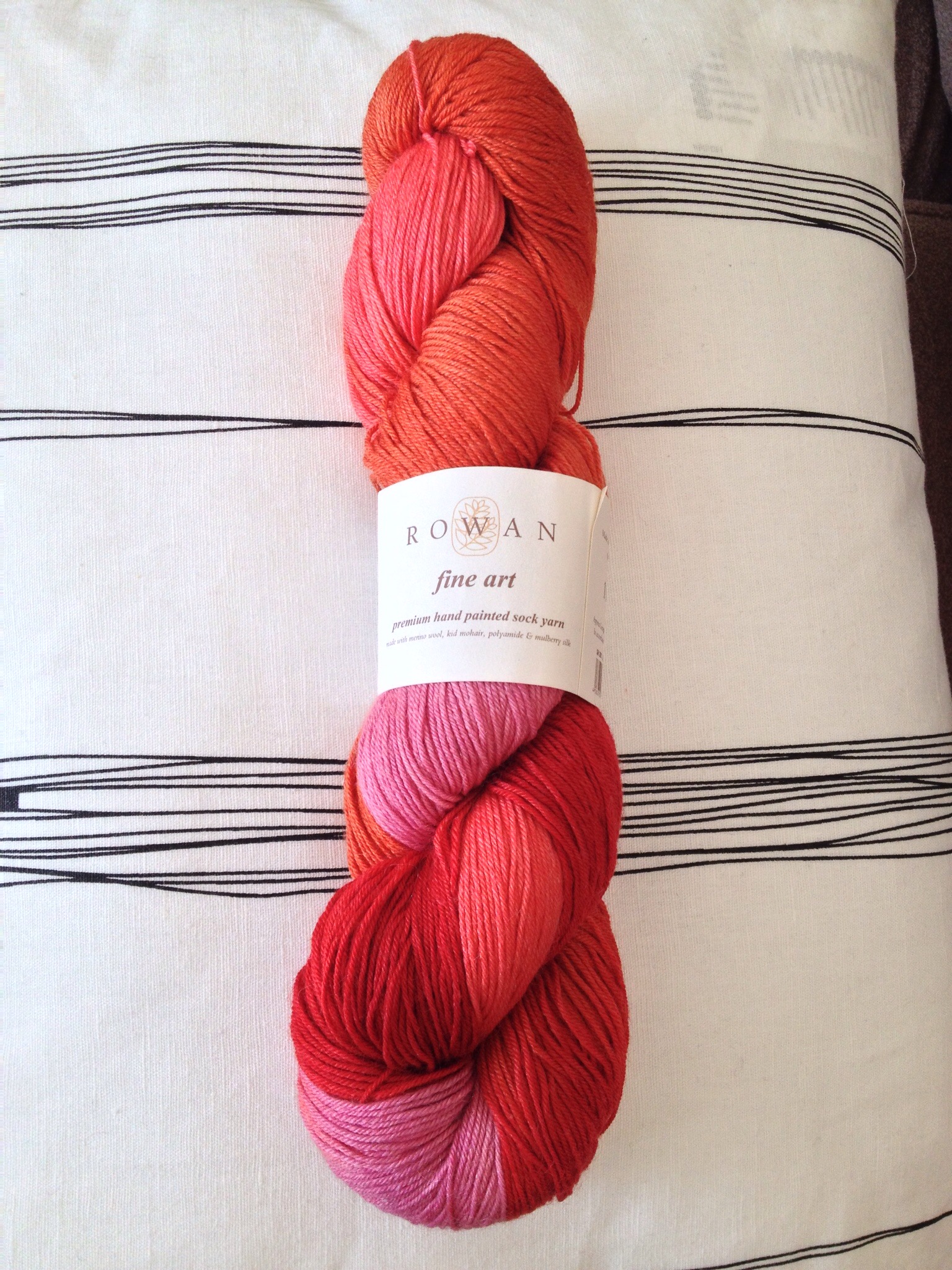 The friend who sent me Clara Parkes knitting book also popped in two balls of yarn. This one was bought in iknit, London, she was going to make an entrelac something or other but ended up unravelling it without keeping the yarn band. It feels like wool, or a good wool blend, and is sock or lace weight (are these really so similar in weight that they are virtually the same?)