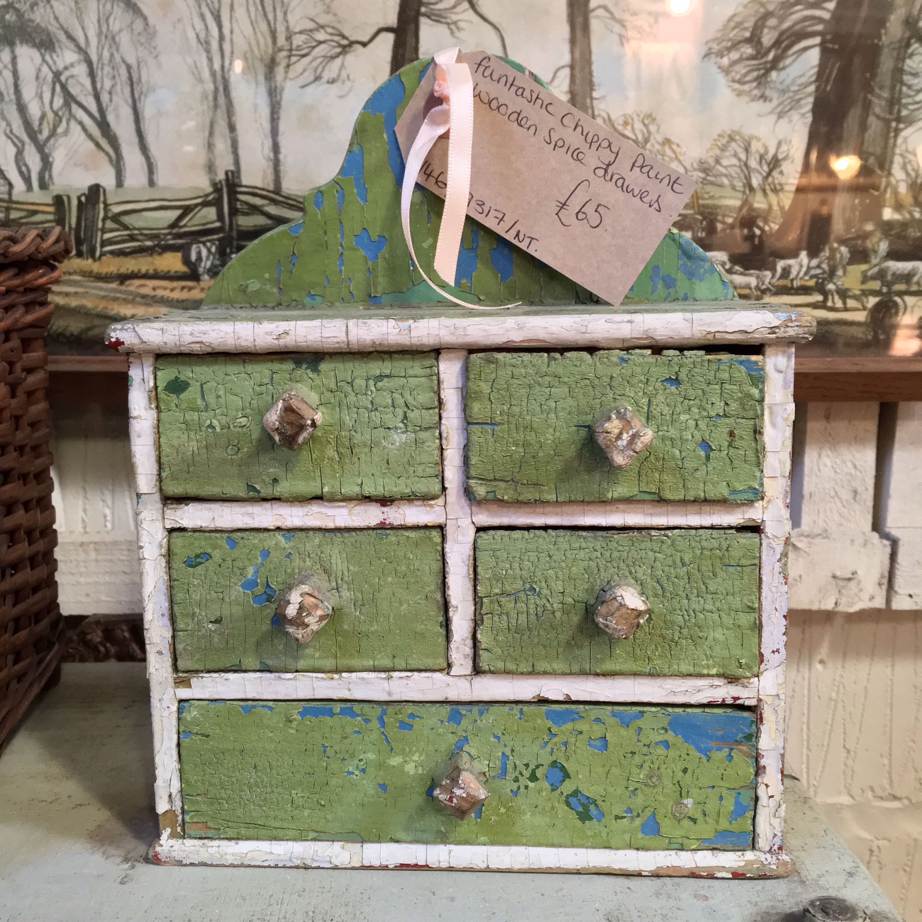 There was something about this little chest of drawers which drew my eye. It’s funny really; as I think most of us would feel we needed to strip and sand it, had it got into this chipped and peeled state. But here it is and on sale for £65!