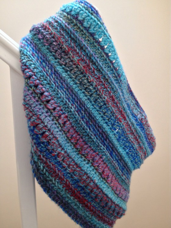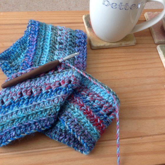 As I wrote this title, following a discussion about farming, wool and the great wealth which came from wool in Yorkshire during decades gone by, it occurs to me that if this were one of those ‘big blogs’ there might be uproar from the wool purists. My Yorkshire cowl is made from 100% acrylic. It’s named because I crocheted it during a week there, and it’s always going to remind me of walks by the sea and the coastal path. The