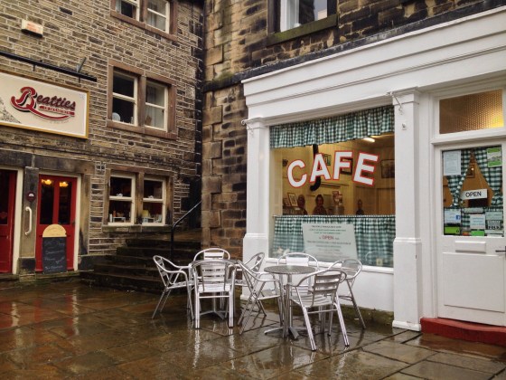 We mooched around a few yarn shops and both bought marble chunky. Then we browsed in a secondhand bookshop which is tucked away in one of the narrow lanes. Holmforth is built up the sides of the Holme valley so has many steps and winding alleys, it’s a great place to explore.
