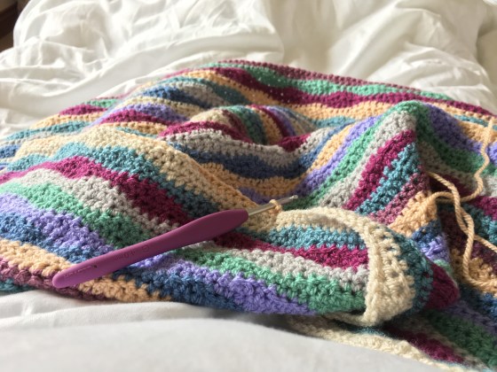 I did start some new crochet (tut, tut) when home. It’s bright and sunny again today; so I’ll nip into the garden later to try to take some decent photos for you.