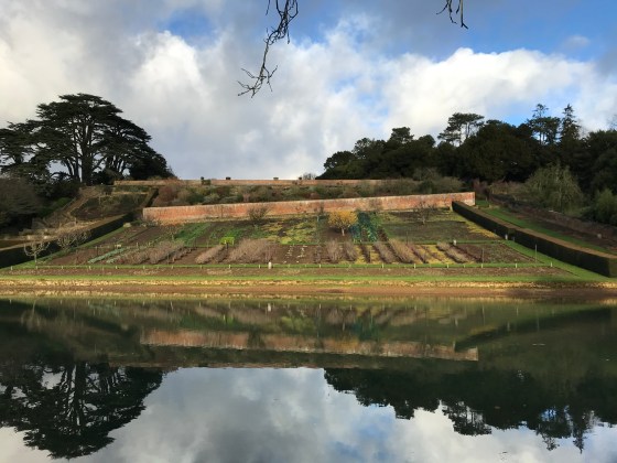 The Mirror Pool from right to left, with a final photo to illustrate why it has been given its name. See the clouds reflected? The terraces above will be full of kitchen garden plants, both fruits and vegetables, and it also has long beds of flowers come the warmer weather. Upton holds the National Collection of Asters, it’s well worth a visit in early autumn to see these late flowering beauties.