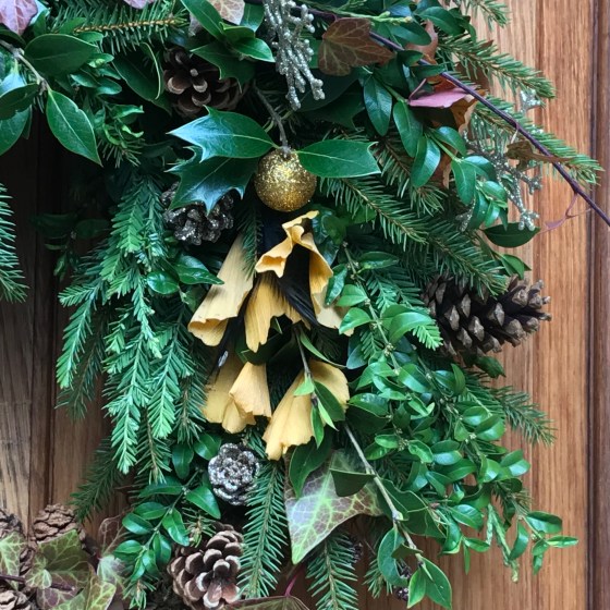 All along the paths were little clippings where people had been foraging for greenery to make this and other wreaths and decorations for the house. This one on Butler’s Cottage, which is adjacent to the main house, would have been awarded my prize for Best in Show, Christmas 2018. I really like the dried orange slices and bundles of cinnamon sticks with the gold ribbon and miniature baubles.