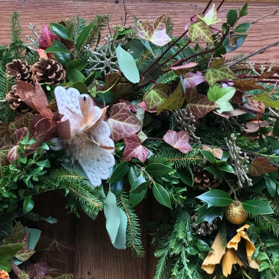 The wreath on the door to the cafe had such a variety of items that I photographed it in sections. Should I ever learn how to make my own, I thought I could return to these pictures for inspiration. (Now I’m dithering over the page up button as perhaps the Butler’s Cottage wreath isn’t my favourite? Could I award both joint First Place?)