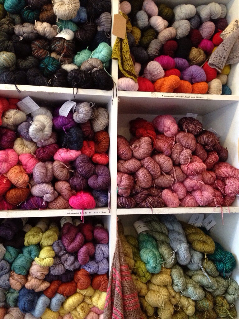 I can bear to show you this Hitchhiker again now. I undid about two thirds of the finished scarf. It was all ready on Christmas Eve to have the ends darned in, wrapped up and given the next day, until I noticed something rather strange. It was not a missed stitch, but a vertical row of 8 or so little stitches like plant shoots reaching up for the light. An alien encounter! I can’t believe I hadn’t spotted that and it was impossible to correct, without leaving a big hole. I must have picked up a stitch where there was none. I felt sick, so it’s been bundled away for weeks until I felt I could redo all that garter stitching. I’ve made good progress adding a little at a time. I took it to Knit group at the pub this week and knitted and knitted until I realised I was holding a mere 3″ of wool. Oops! I have more, so that’s ok. As much as I love this Tosca Light by Lang, it is pretty tricky to undo. It’s fluffy when knitted, so like trying to rip open brand new velcro shoe straps. In the end I got so fed up that I grabbed my scissors several times and ended up with about four balls. I’ll forget about those for now and start a new reserve ball.