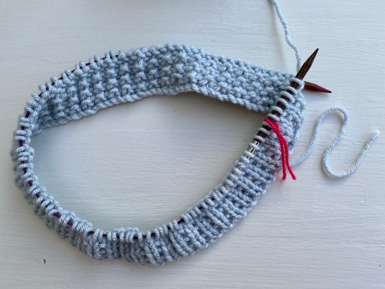 I know that some of you are waiting for the pattern for my knitted cowl, but like an idiot I sent it to my friend before I worked out a few details for the written pattern. She sent me a picture wearing it when she’d just received it. I hadn’t told her when it was posted as I thought a surprise would be really welcome in this bleugh time. Her little face was a picture of joy, so I can hardly ask her to send it back. So, I’m starting another and this time trying to be a little bit more professional about things…!