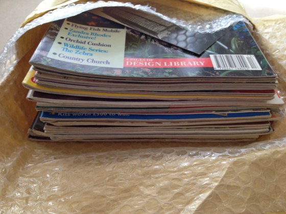 This is my catch up reading pile. I asked for my birthday subscription not to be continued for a third year to Mollie Makes, again it’s feeling in a bit of a rut. I really can’t face yet more patterns for felt animals and the target audience feels like it’s for young twenty somethings. That’s fair play especially if it’s encouraging them to develop or learn some crafty skills; I just realised that I hadn’t used any of the mini packs, let alone made any items from the magazine for ages and ages.