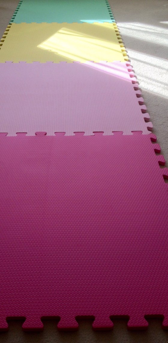 Foam mats from The Early Learning Centre are, I was told by my crochet blocking guru, a good alternative to overpriced craft blocking boards. On reflection those purpose made with lines and measurements on them might be preferable, but my plain mats did the job well enough.