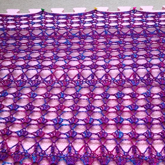 It is actually quite enjoyable pinning and stretching the crochet, I was quite surprised how much I liked it. My knees weren’t so happy, but that’s too bad!