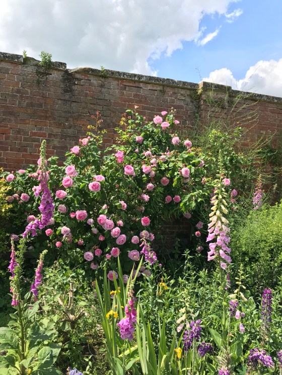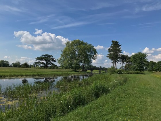 Who wouldn’t want to explore a walled garden, rescued from the clutches of a property developer, walk around the first parkland designed by Capability Brown, learn more about a house with a rich history, stand on a Chinese bridge spotting fish leaping, and walk along a wild flower meadow. There was a cup of tea and slice of chocolate and orange cake at the Walled Gardens too. That cake was so good that I’m going to make my own version on Friday. I’ll share the recipe I’ve found, if it’s a goodie.