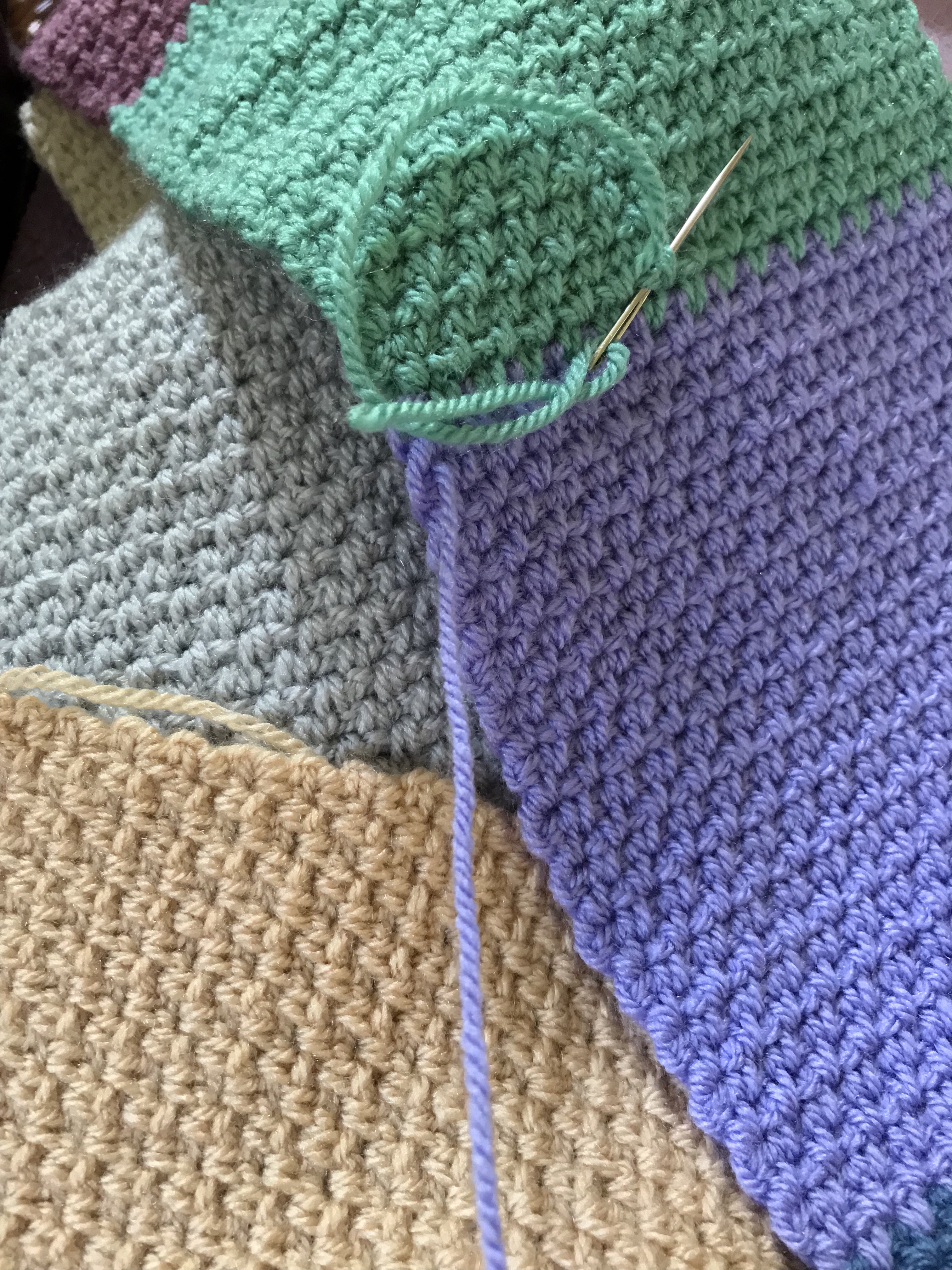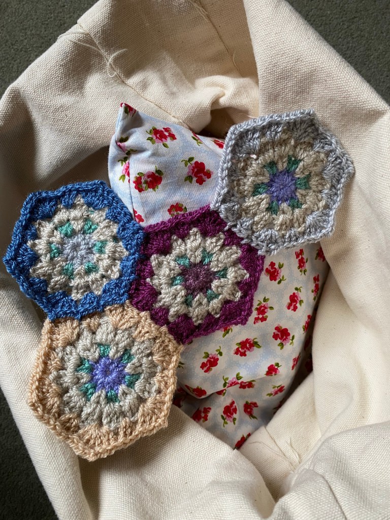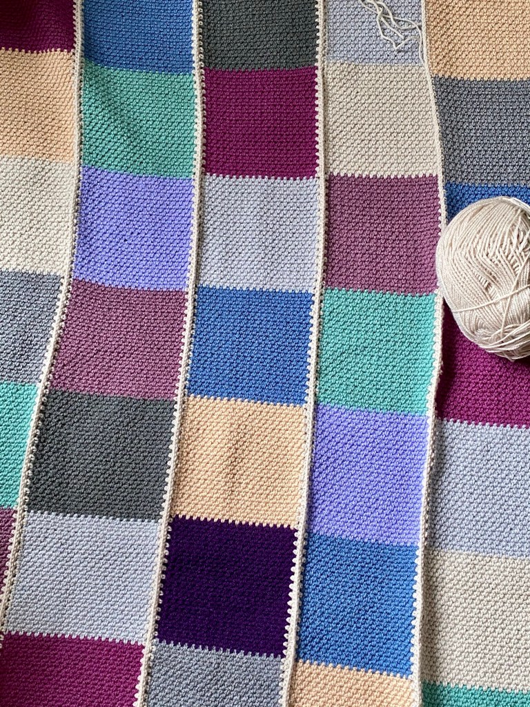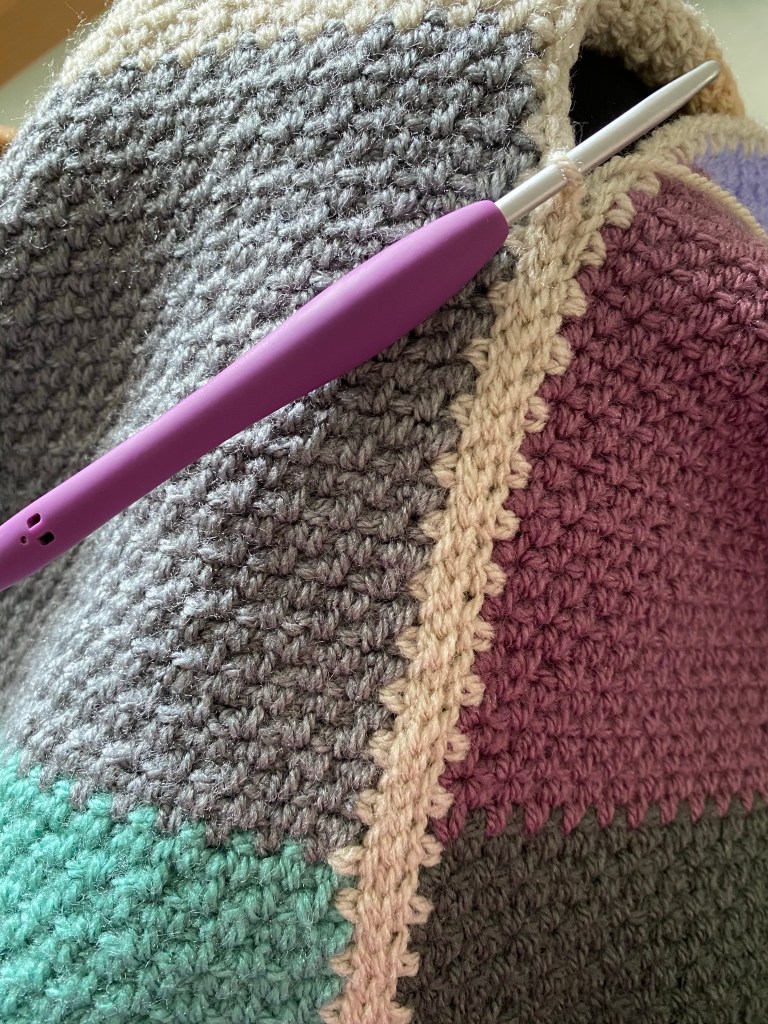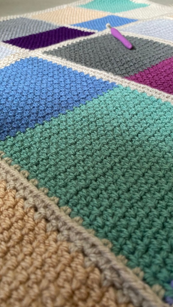 Last night with this in mind I’d started off with a bit of garter stitch knitting on my big stash buster blanket. I did two rows which is five hundred stitches. It all felt ok, too ok really considering that on my call with the medical insurance people I’d said it’s a pain level of 9/10 when I do anything, and 6/10 resting. It was back then, but maybe not so much now. It seemed common sense to move on to some crochet, just to properly test the water. I did four rows, or so, of the grape. Then swapped to the green and completed the block, while watching the penultimate episode of The BBC’s The Woman in White. So far, so good, which is fine, but have I healed myself and what will I say to the physio?