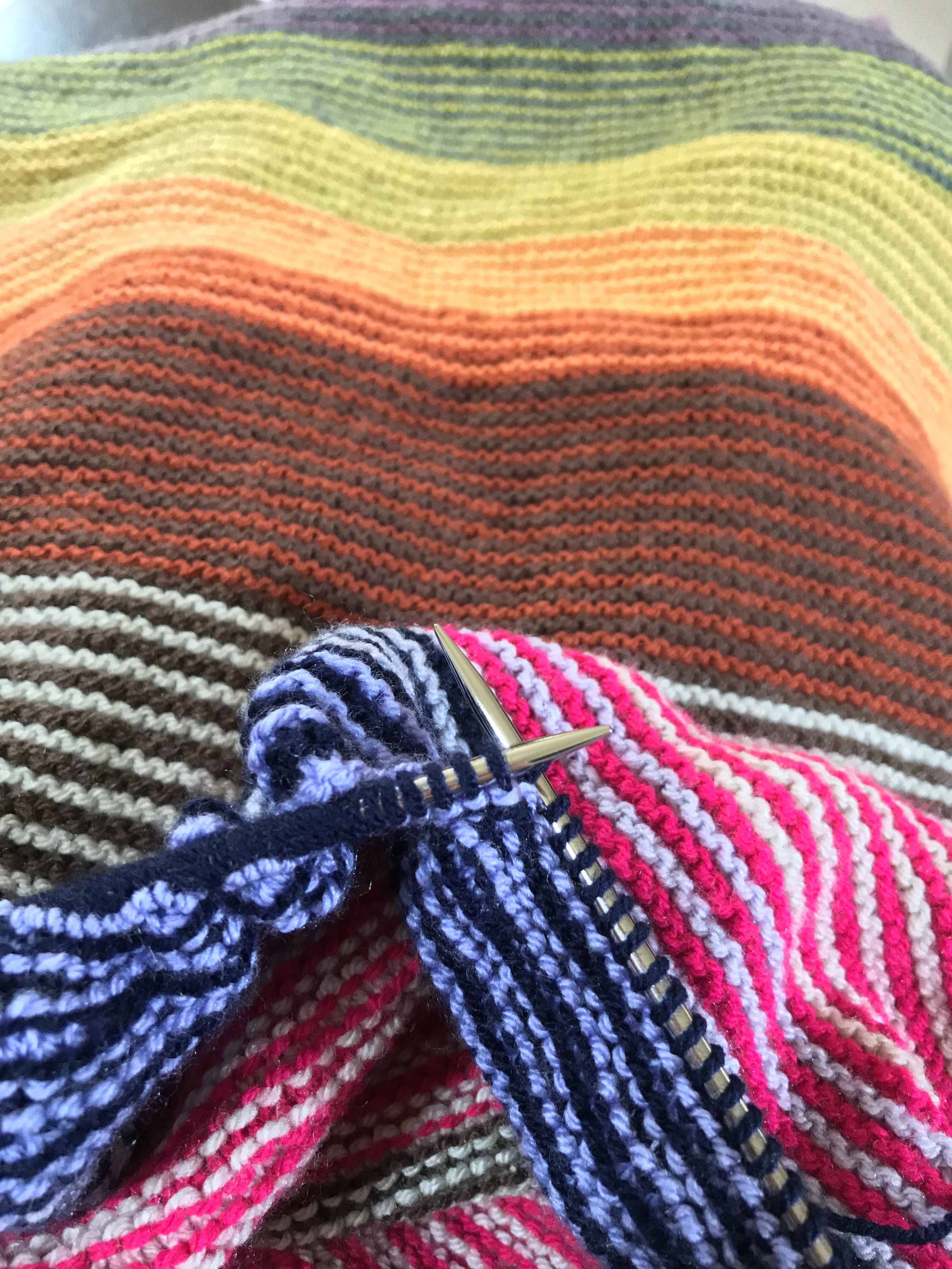 I took my sock knitting when I went to see the physio this afternoon, just to show him how teeny the silly little needles are (I actually do love them) and how the yarn is wrapped around my fingers. I mimed the repetitive movements you make. I told him how I’d got too involved in redoing a section in April, totally immersed in the sock knitting zone for far, far too long. He laughed, but that’s ok as I saw him about 18 months ago when I had a knee injury, and so he’s got an idea of what I’m like. At least it wasn’t full on laugher like some years ago when I had to answer the ‘What caused this injury’ question and had to admit it was kneading bread. She laughed like a drain. That was a bit weird.