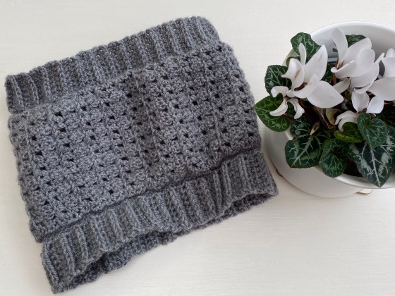 This time I still didn’t make it in one piece; because I really like the way the ribbing looks. I added a row of double crochet to each edge of the body of the cowl and one side of both ribbed strips, then crocheted them together. This was far more satisfying than sewing. I have a feeling it might be a stronger join too. I single crocheted into the inside loops only which made a smooth seam.