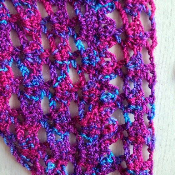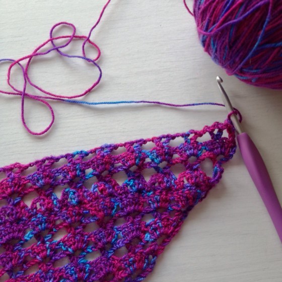 Aren’t the colours in this yarn lovely? I reckon it’s sock or lace weight as it feels quite a bit finer than the 4 ply I used for my Raspberry scarf.