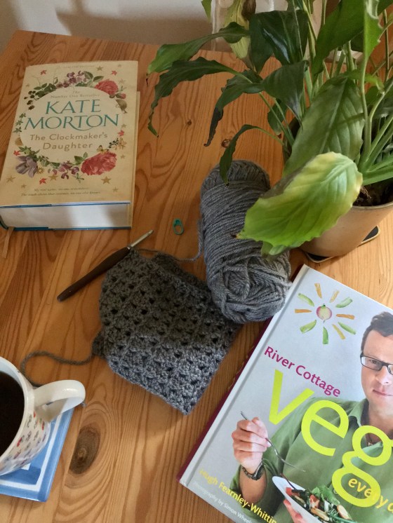 Ignoring the total craft ban I optimistically tried again for 10 minutes of crochet during the Crimbo Limbo week, that gorgeously lazy time between Christmas and New Year. Of course it turned into 30 minutes, because I’m desperate to be making again after months of nothing, so I had to admit to stupidity and run for an ice pack. I won’t tell the Hand Therapist when I see her at the end of the month. My hand is definitely improving, but it’s a painfully slow process. Still, the upside is I have a legitimate photo to share for Ginny’s monthly Yarn Along. Hurrah!